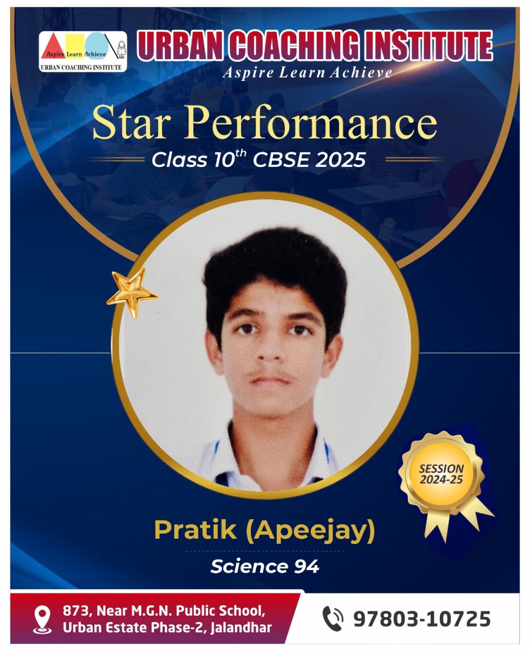 Urban Coaching Institute (UCI), with its strong presence in the region, has emerged as one of the elite institutes for IIT-JEE, NEET, and Foundation preparation over the past decade. Through the consistent dedication of our faculty and the relentless efforts of our students, we take pride in producing achievers in JEE, NEET, Class 12 Board, and Class 10 examinations year after year.